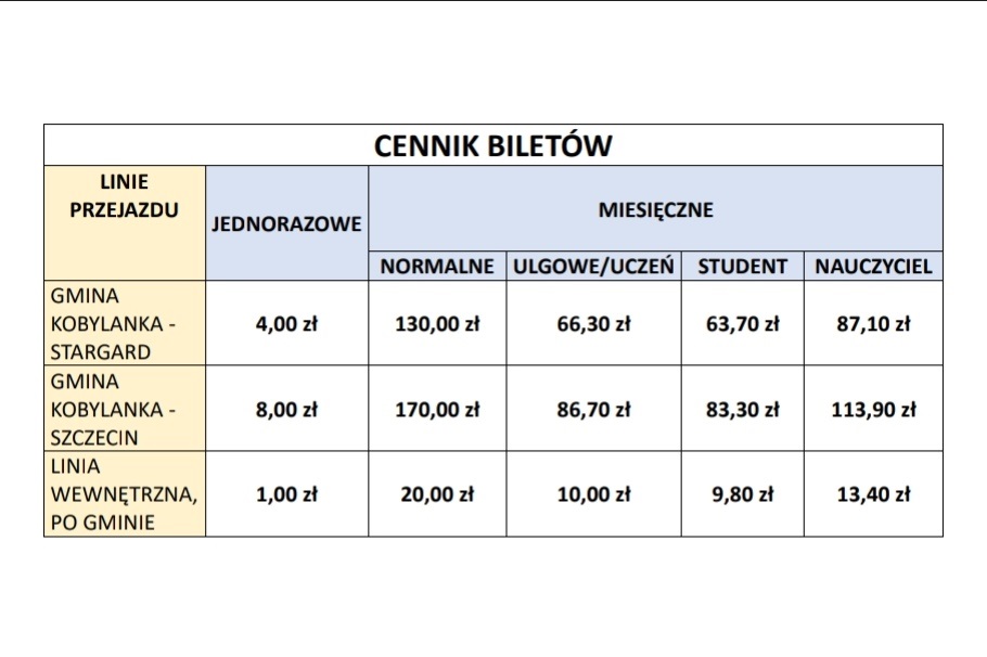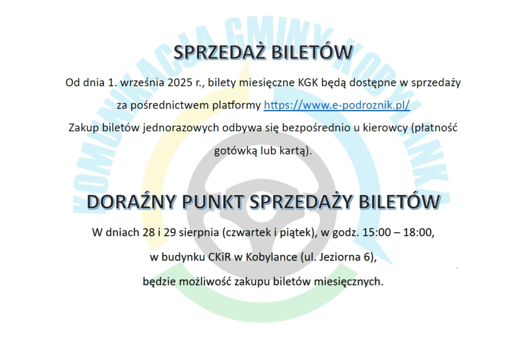Sprzedaż biletów – Komunikacja Gminy Kobylanka