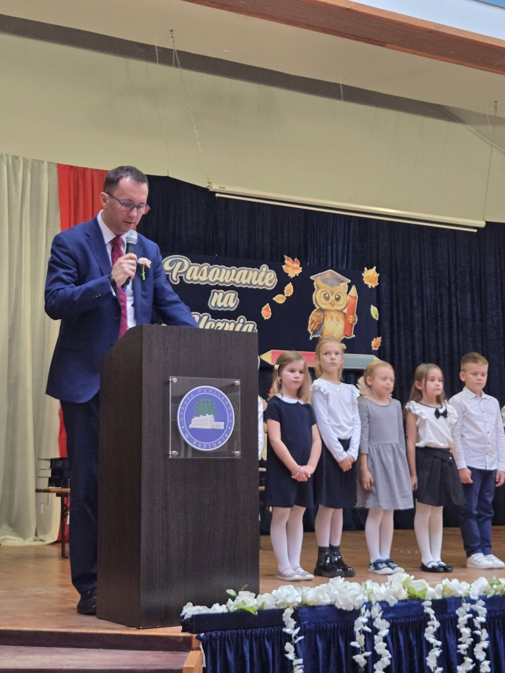W dniu 14 października 2025 roku w Szkole Podstawowej w Reptowie odbył się apel z okazji Dnia Edukacji Narodowej, na którym Pan Dyrektor Tomasz Korczyński pasował pierwszoklasistów na uczniów szkoły. W uroczystości wzięła udział również Pani Wójt Julita Pilecka, która składając nowym uczniom najlepsze życzenia wręczyła im również upominki.